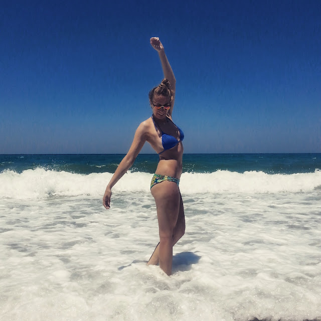 No niestety, poślad Chodakowskiej mi nie wyszedł, ale chwilą postanowiłam się cieszyć, bo to przecież jedyny taki moment w roku kiedy można po łydki stanąć na kamolcach w spienionej,morskiej wodzie i wymachiwać kończynkami z radości.